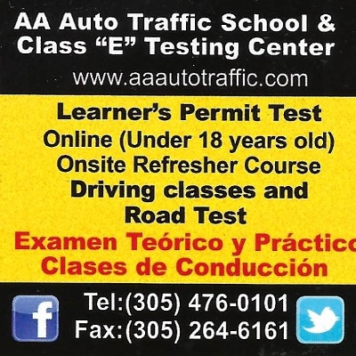 AA Auto Driving School & Class “E” DriverTesting Ctr, ubicada en el corazón de Miami en 7305 W Flagler St, combina la eficiencia de una escuela de manejo estadounidense con un toque cálido y cercano; sus instructores, pacientes y bien estructados, hacen que cada lección sea una experiencia práctica y segura, mientras que la moderna infraestructura y el fácil acceso a recursos online (http://www.aaautotraffic.com/) facilitan el aprendizaje; con una valoración de 4.1, la escuela destaca por su atención personalizada, horarios flexibles y un ambiente que motiva a los futuros conductores a ganar confianza al volante, todo ello respaldado por un número de contacto siempre disponible (305) 476‑0101.